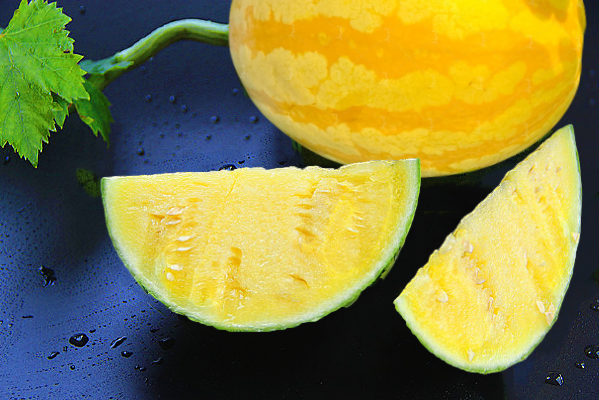 Fun for the entire family! Cheerful yellow melons with gold striping that are yellow-gold on the inside for a truly delicious fruit! Oval fruits are crisp, refreshing and delicious. Grow with our new ‘Gold in Red’ watermelon for a colorful combination that will feel like a party!