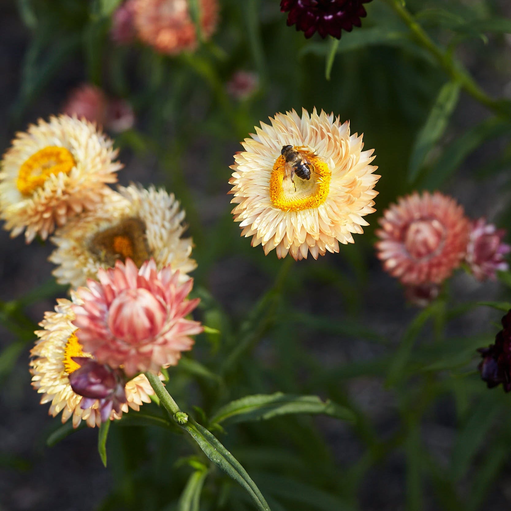 Common Name: Strawflower Apricot + Peach Mix, Everlasting Daisy, Paper Daisy