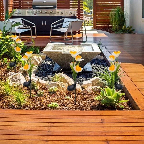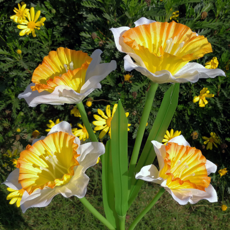 Solar Flower Lights - Outdoor Waterproof LED Flowers for Garden, Path, Landscape, Patio, and Lawn | Orange and White Daffodils