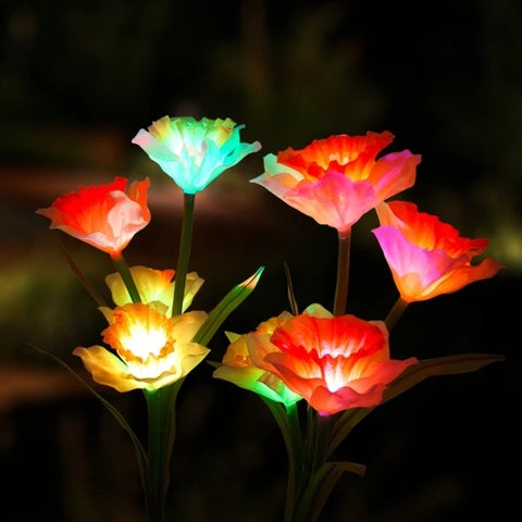 - Daffodils flower solar powered garden/yard stake color-changing light, has sediment stem will light up.