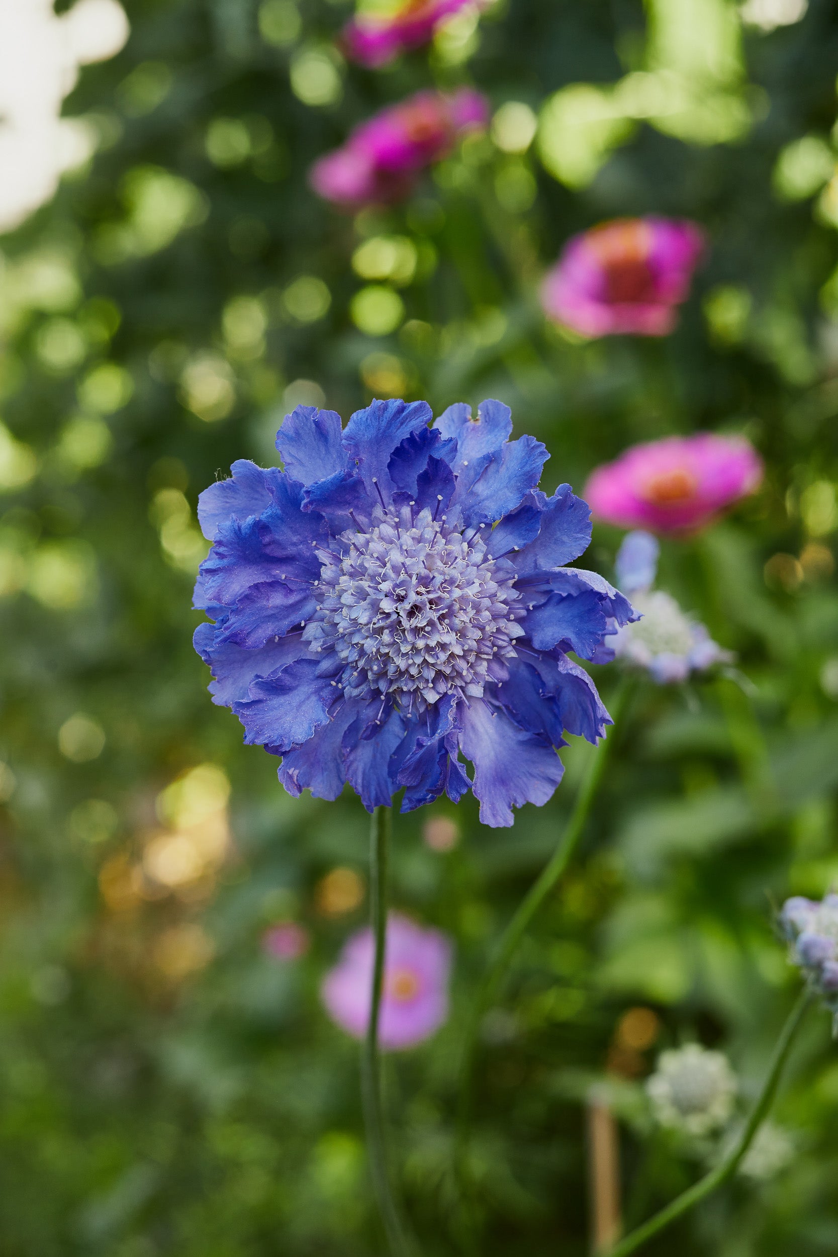 Remarks: First year flowering. Large deep blue scabiosa flowers that have a beautiful frilly edge and strong wirey stems. Easy to grow and winter hardy. May need support netting.