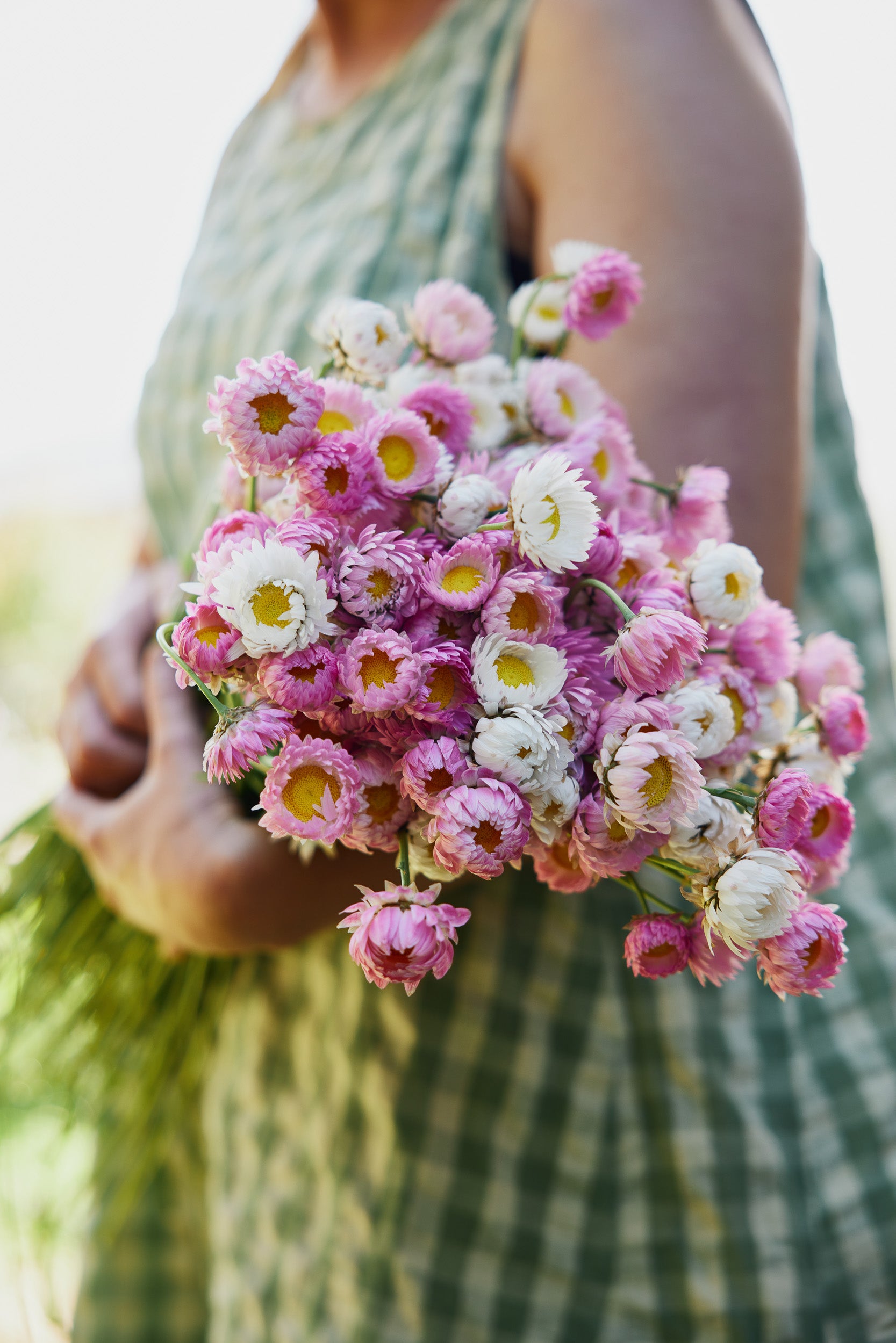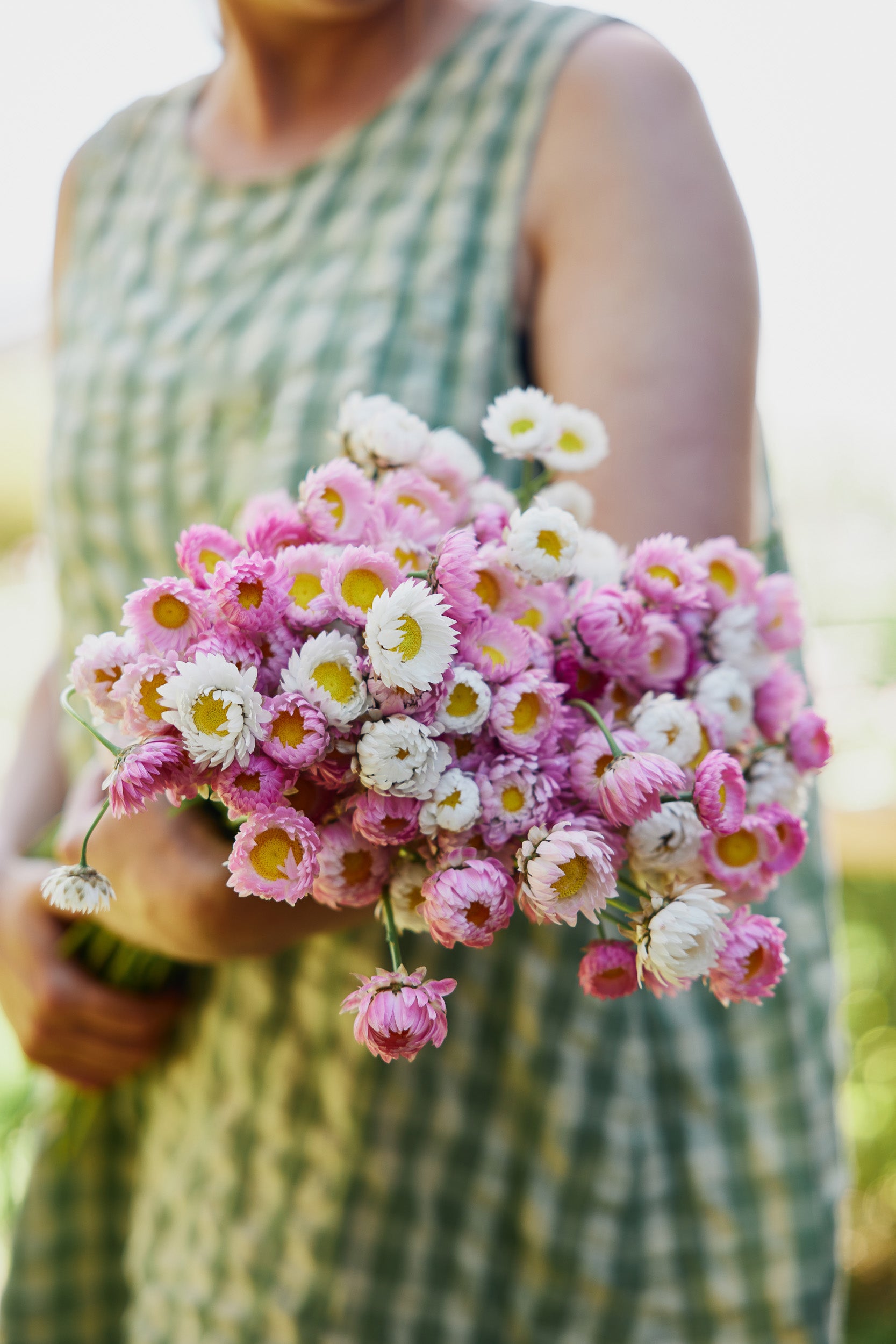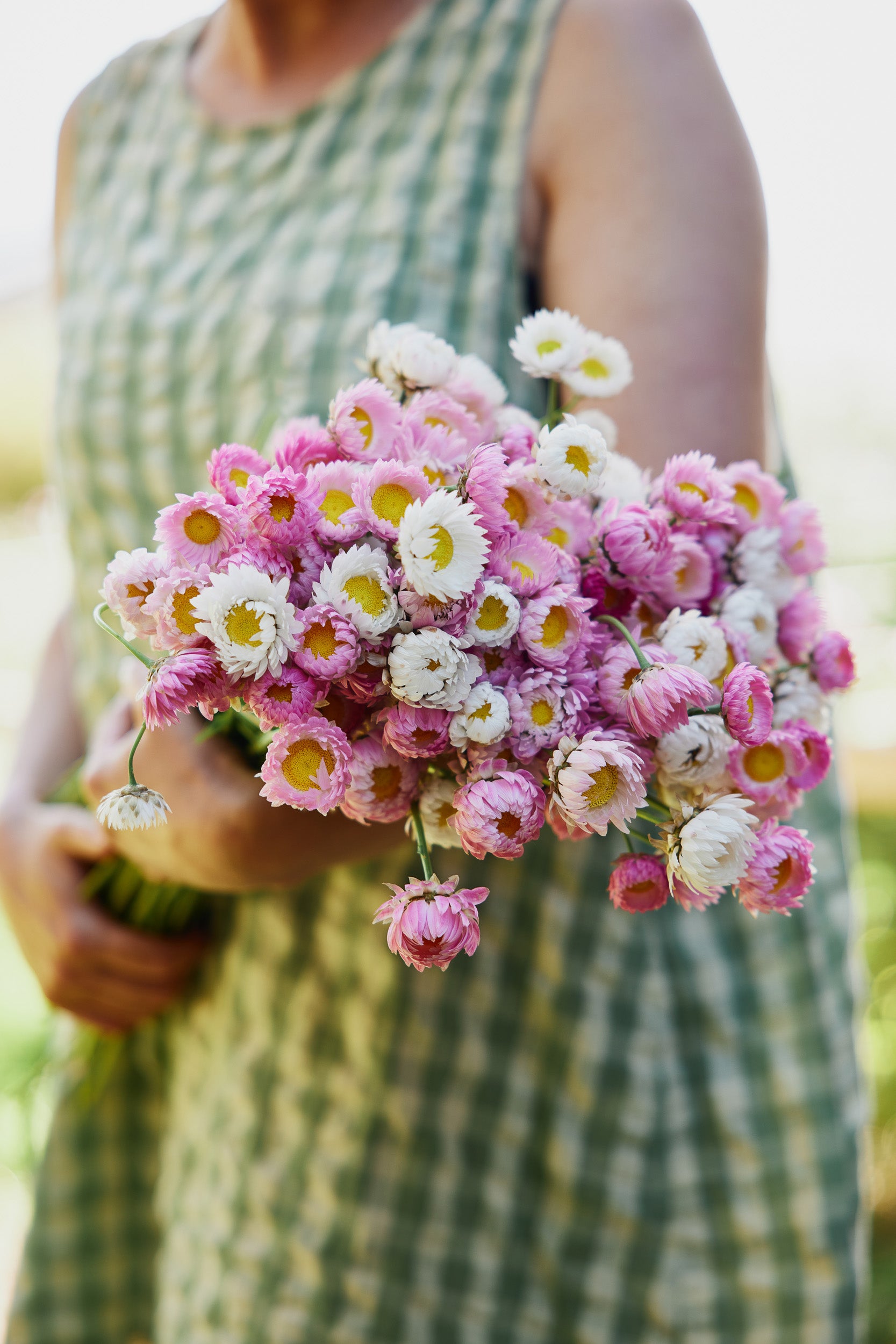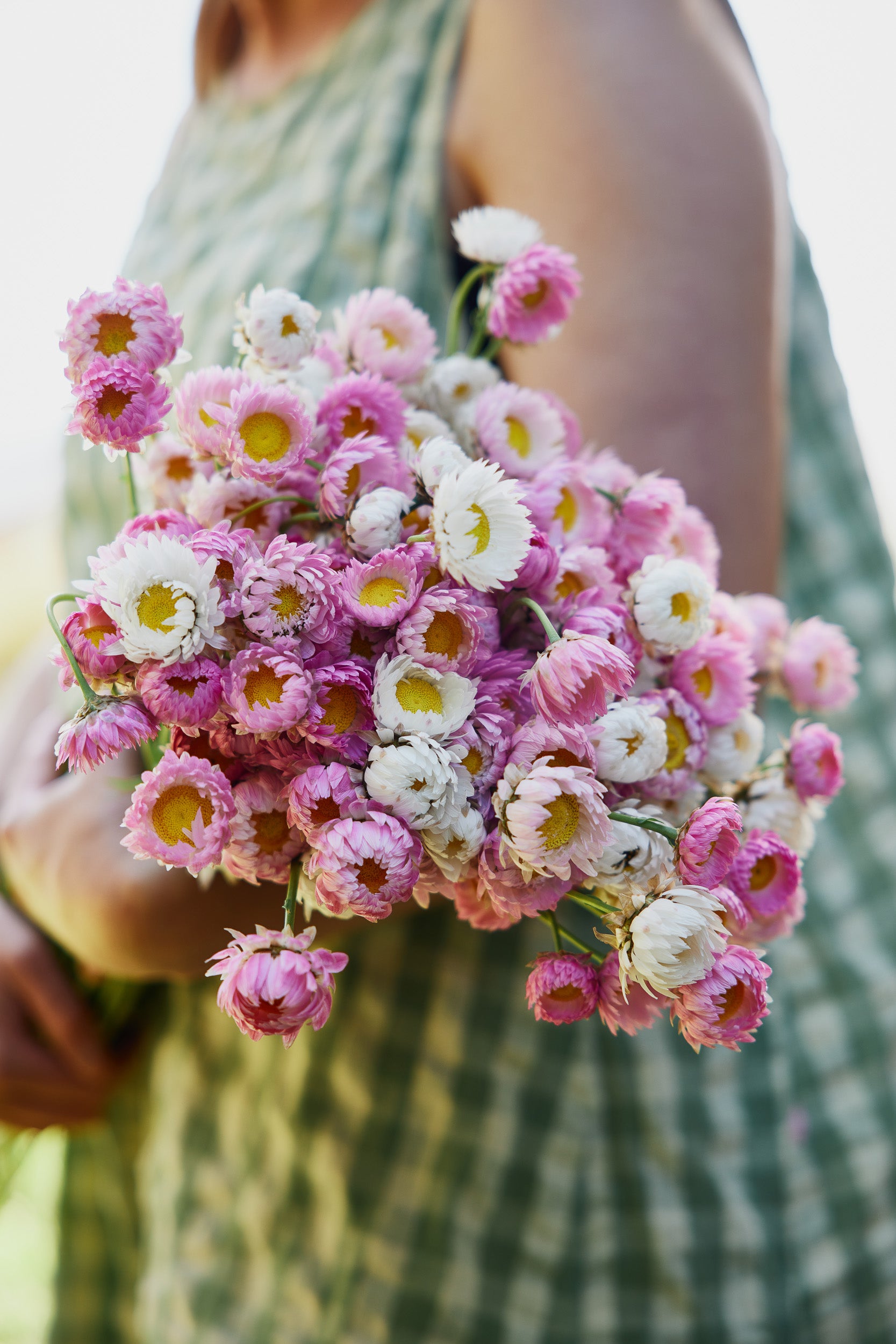 Common Name: Strawflower Pink + White Mix, Everlasting Daisy, Paper Daisy