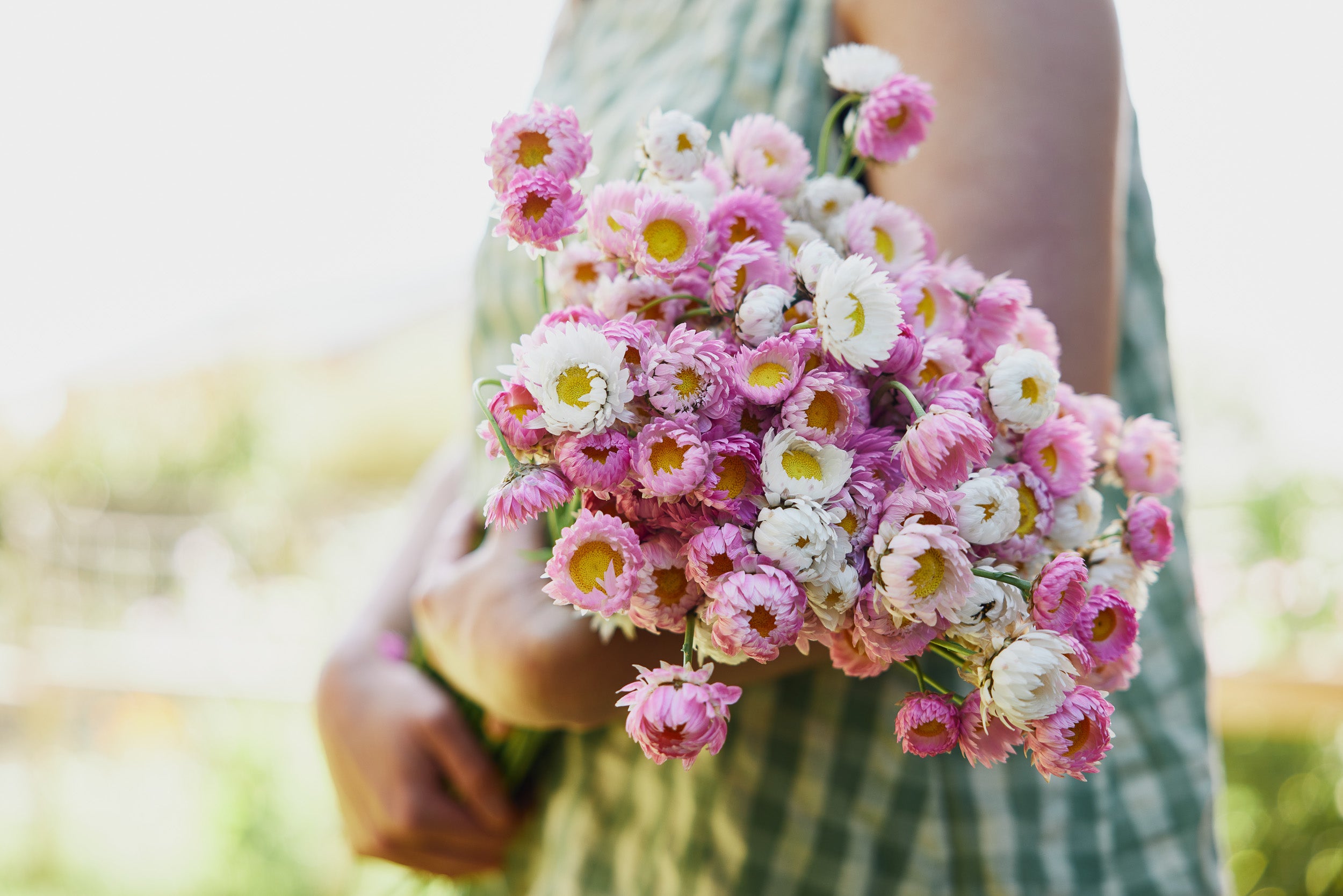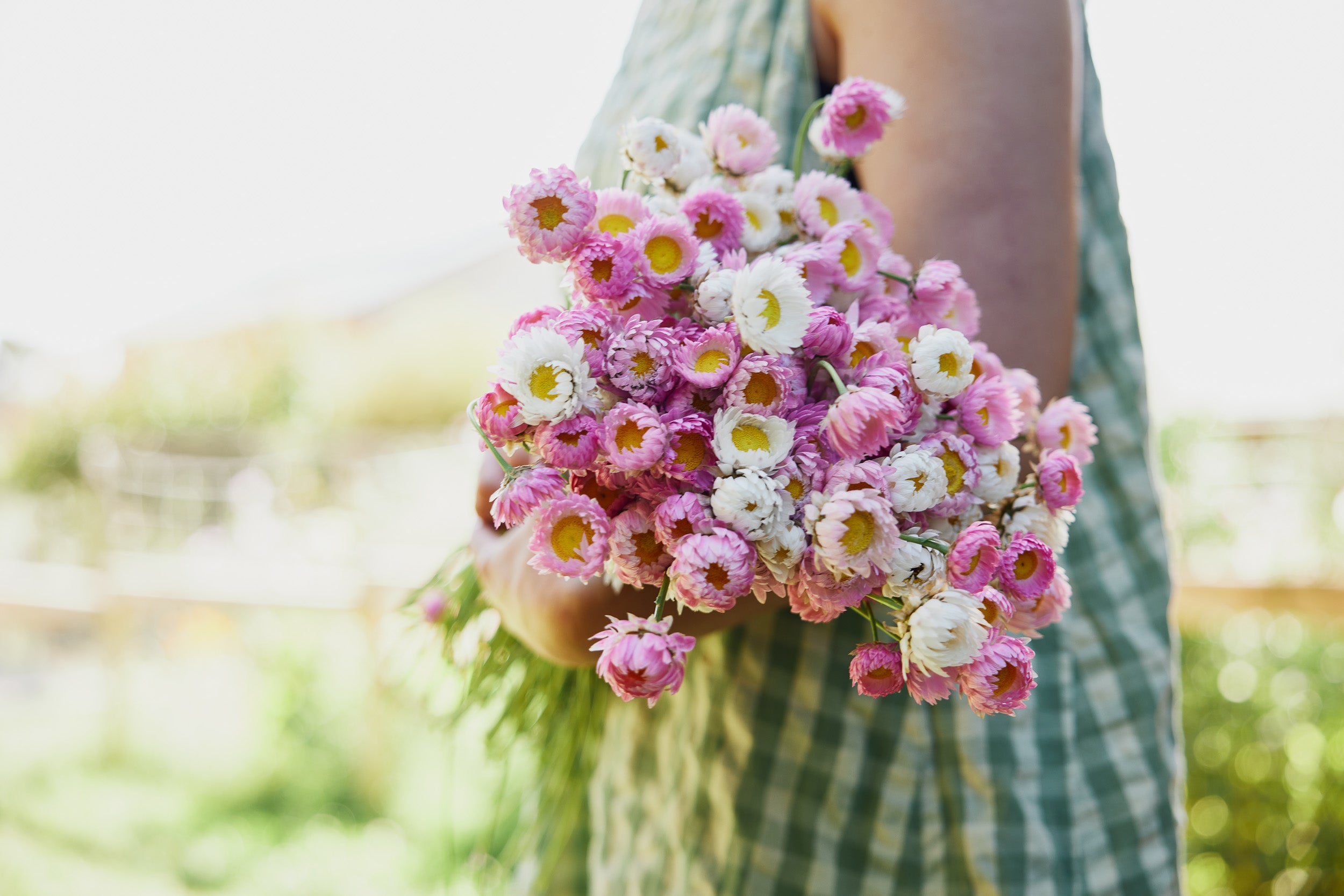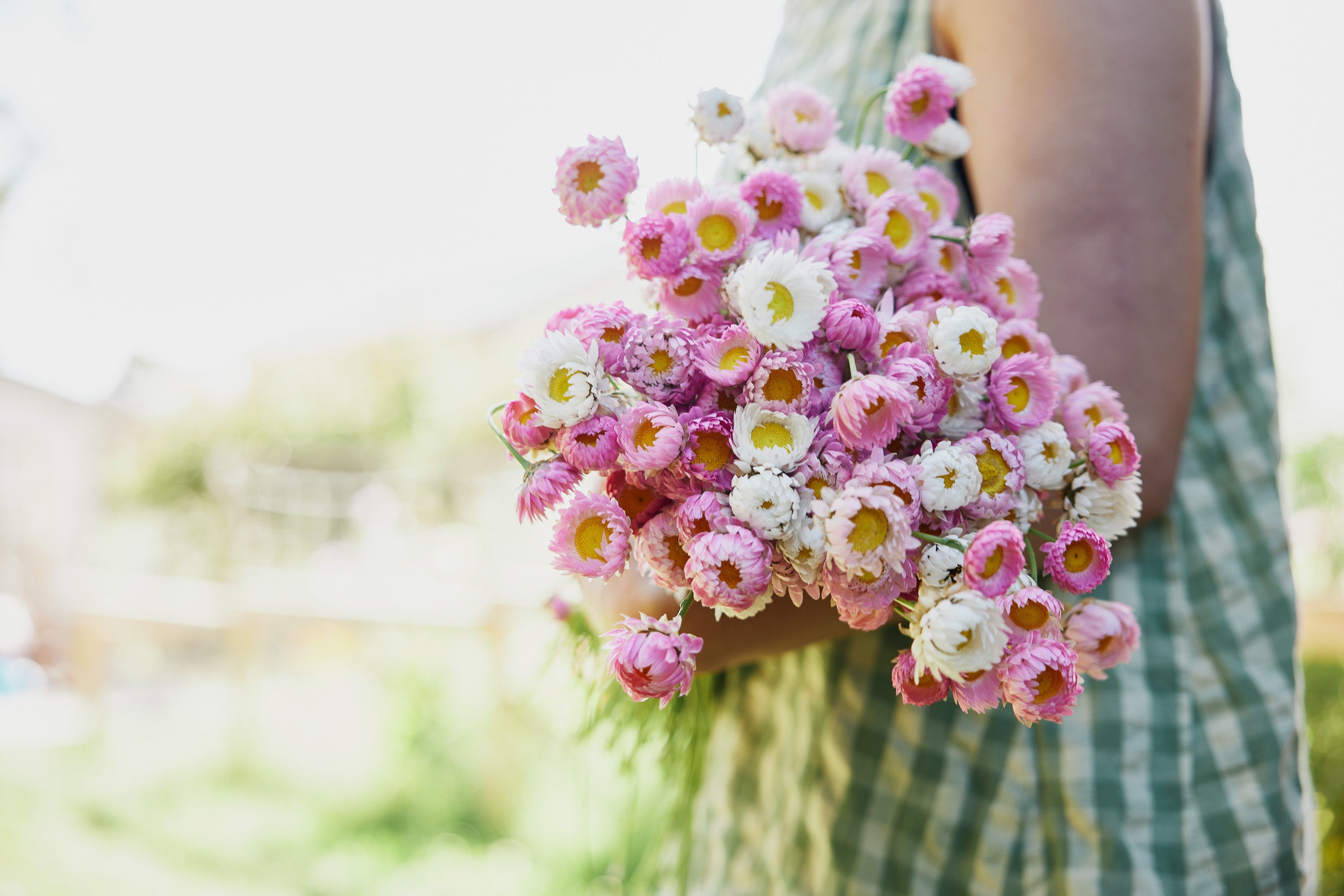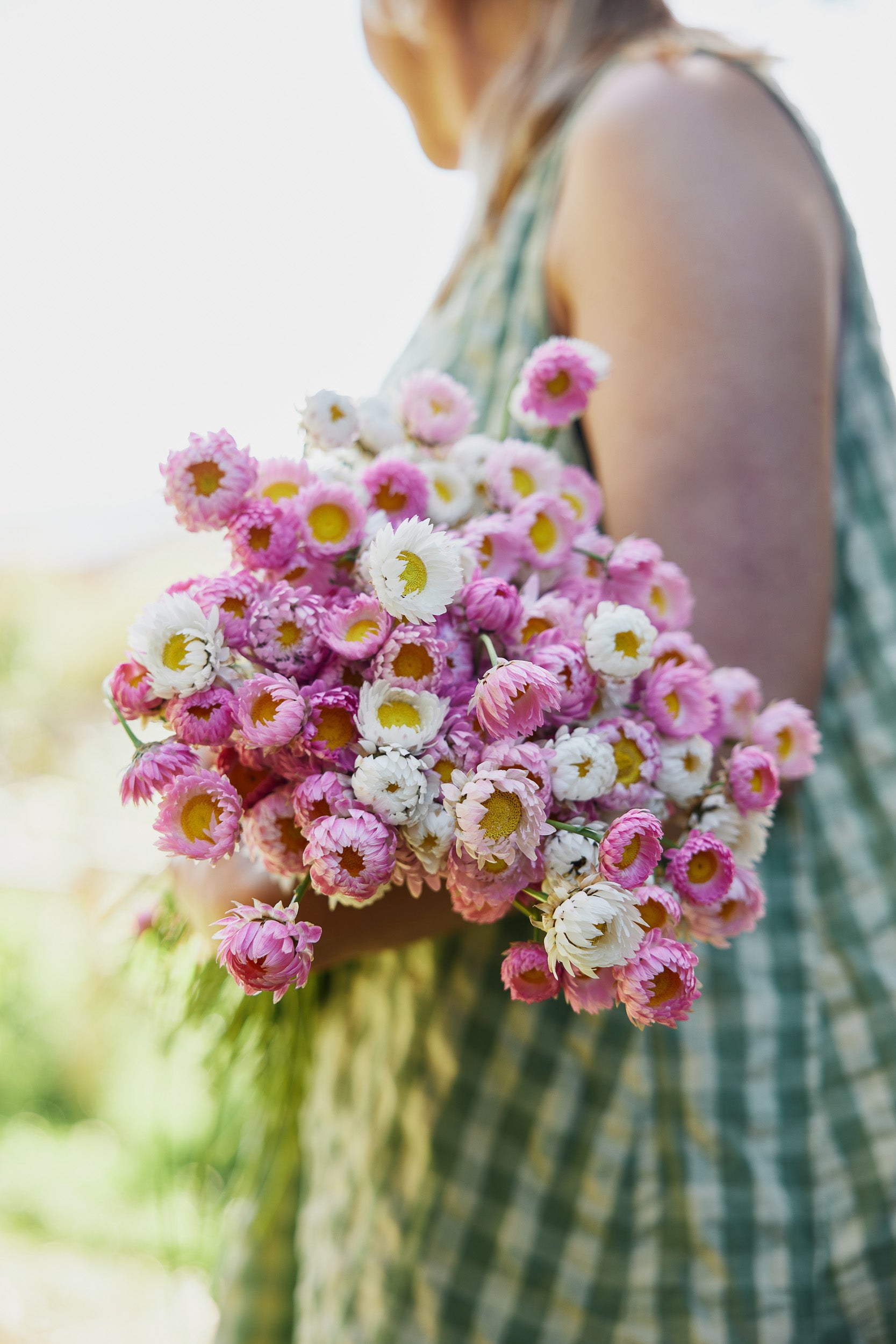 Common Name: Strawflower Pink + White Mix, Everlasting Daisy, Paper Daisy