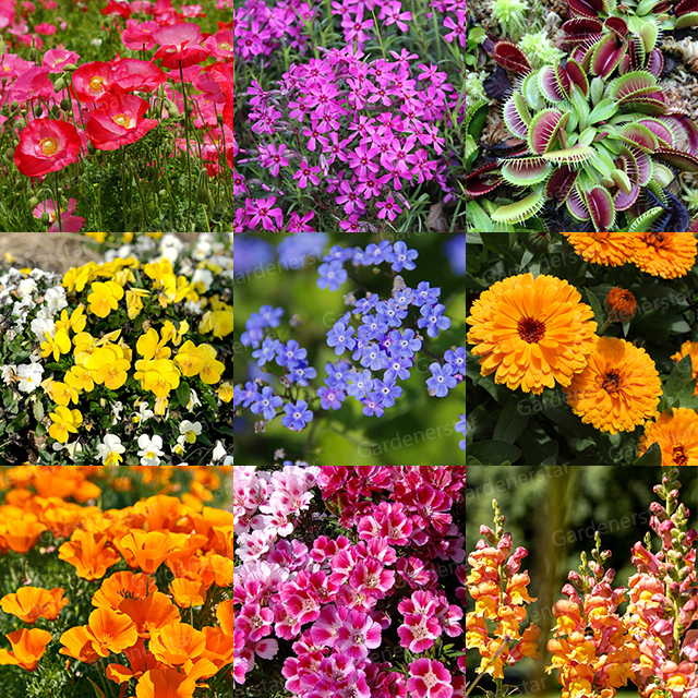 Plant Mix Pack Contents: Calendula, Cornflower Tall Blue, Godetia, Plains Coreopsis, California Poppy, Spurred Snapdragon, Baby Blue Eyes, Red Corn Poppy, Red Poppy Shirley, Phlox Annual Red, Catchfly, Johnny Jump Up, Forget Me Not. Mix contents are subject to change.