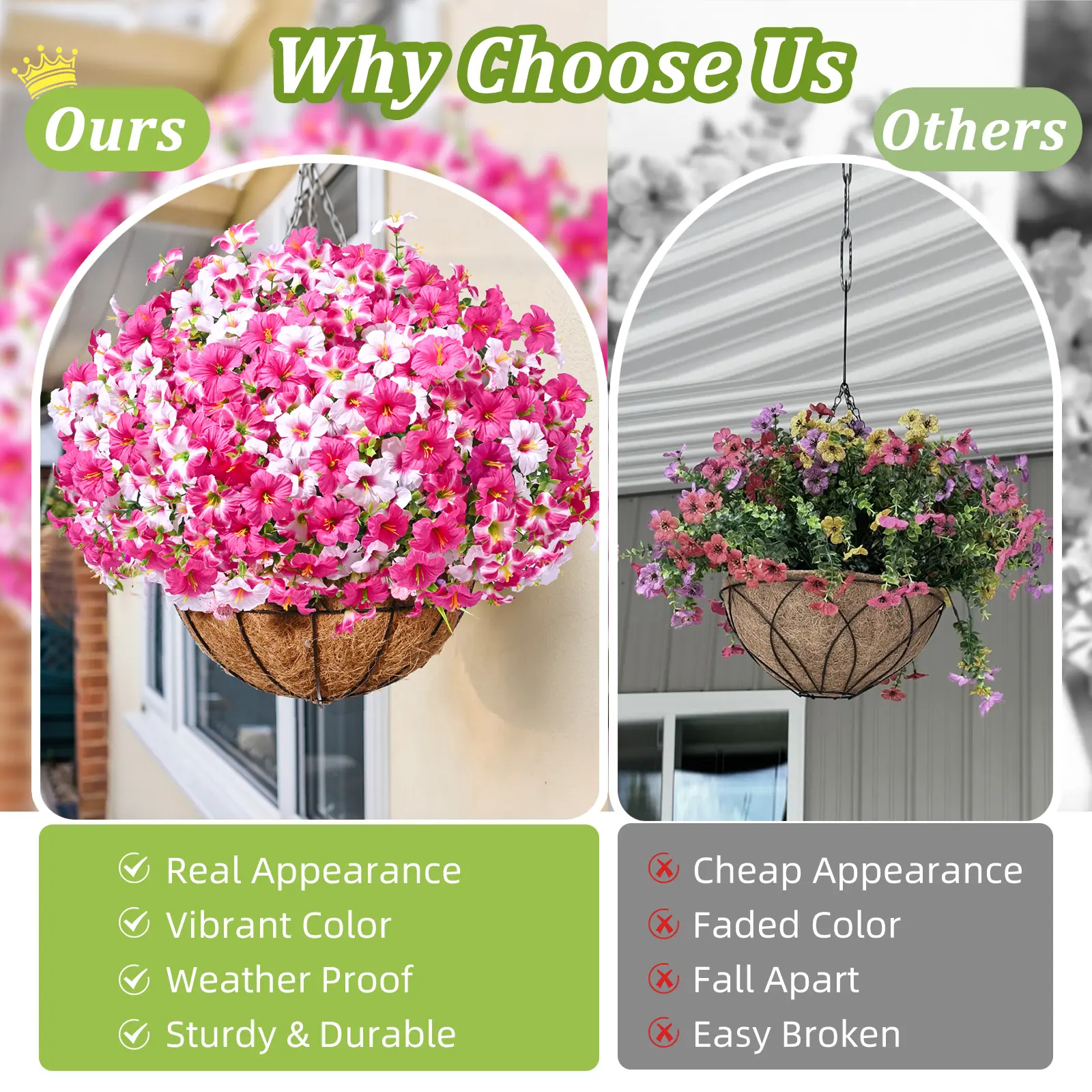 Versatile Indoor/Outdoor Use: From home and office decor to patio and garden embellishment, this faux flower effortlessly adapts to various settings, bringing enduring beauty to your surroundings.