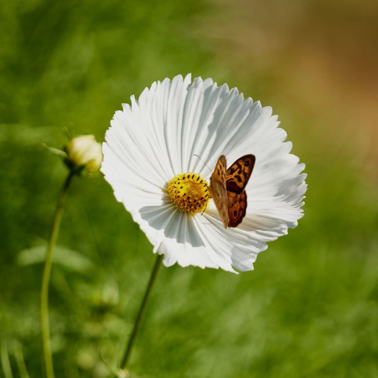 Pinch out your cosmos seedlings when they are 30cm tall (3 true sets of leaves). Pinching out means taking the top 10cm off your seedling. This will encourage bushier foliage and more flowers!