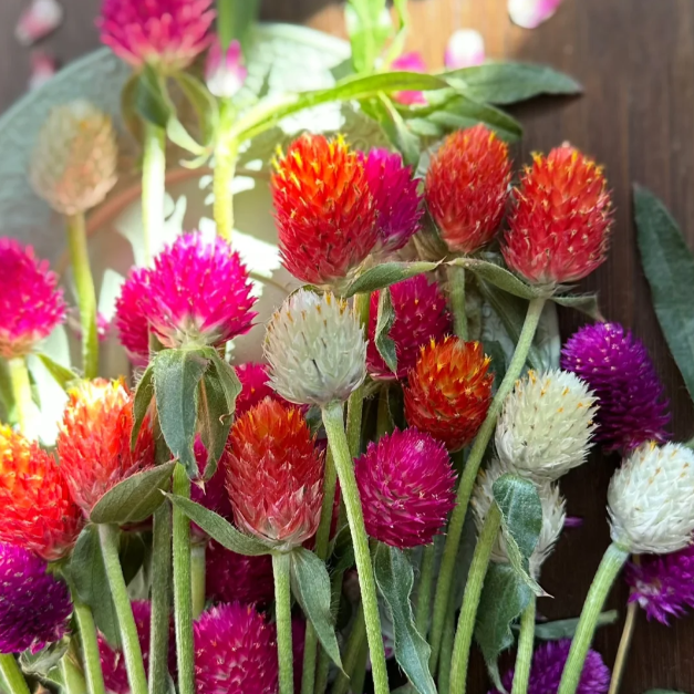 🌸Gomphrina is native to America. Its flowers are bright and shiny. After drying, they do not wither and remain unchanged for a long time, so it is named Globe amaranth. Its lovely "flowers" are actually small bracts. After drying, they can be preserved for a long time without withering, making them very suitable for dried flowers.