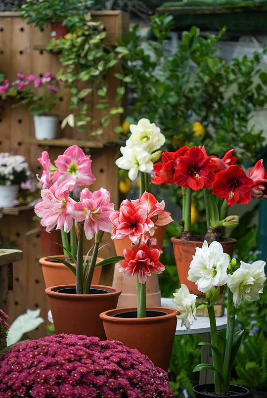 🌸 New & Rare: Double amaryllis with special colors like plum red and unique patterns.🌼 Multi-Bloom Power: One plant, multiple flower stalks for a fuller display.🏡 Indoor & Outdoor: Grows well in pots or garden beds.🌱 Easy to Grow: Strong, beginner-friendly, adapts to different conditions.💎 High-Quality Bulbs: High bloom rate with reliable reblooming.