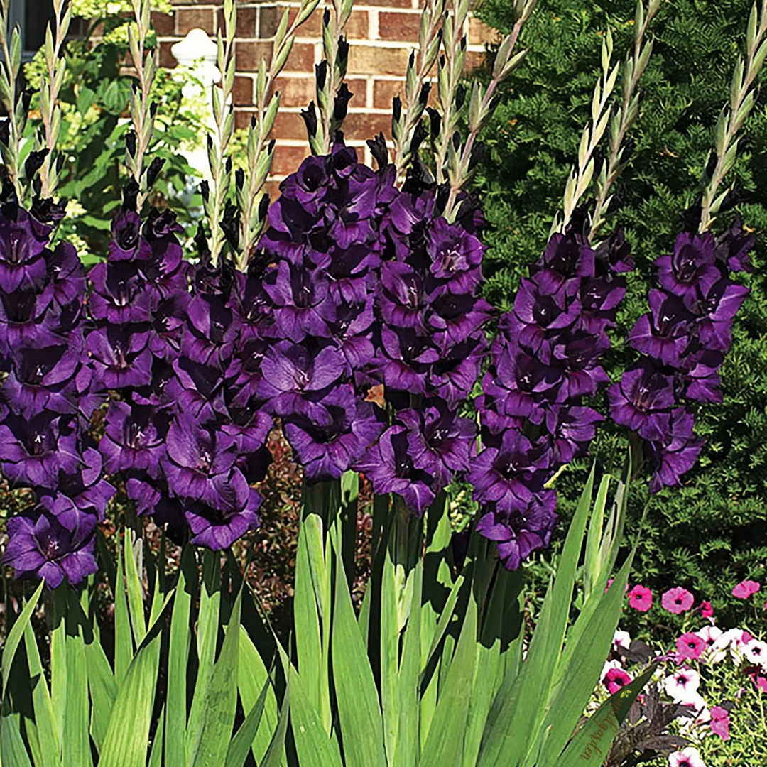 Gladiolus bulbs (or corms) can be planted in rows or clusters. They tolerate some crowding but will produce larger blooms if spaced out. Plant them 4-6 inches deep in the ground to reduce the need for staking, and space them approximately 6 inches apart. If planting multiple bulbs, stagger their planting times for a continuous bloom. Mulch can help retain moisture and suppress weeds. Gladioli require ample water to flower well, especially in well-drained but poorer soil where additional watering may be necessary. Once planted, gladiolus typically thrive with minimal maintenance.