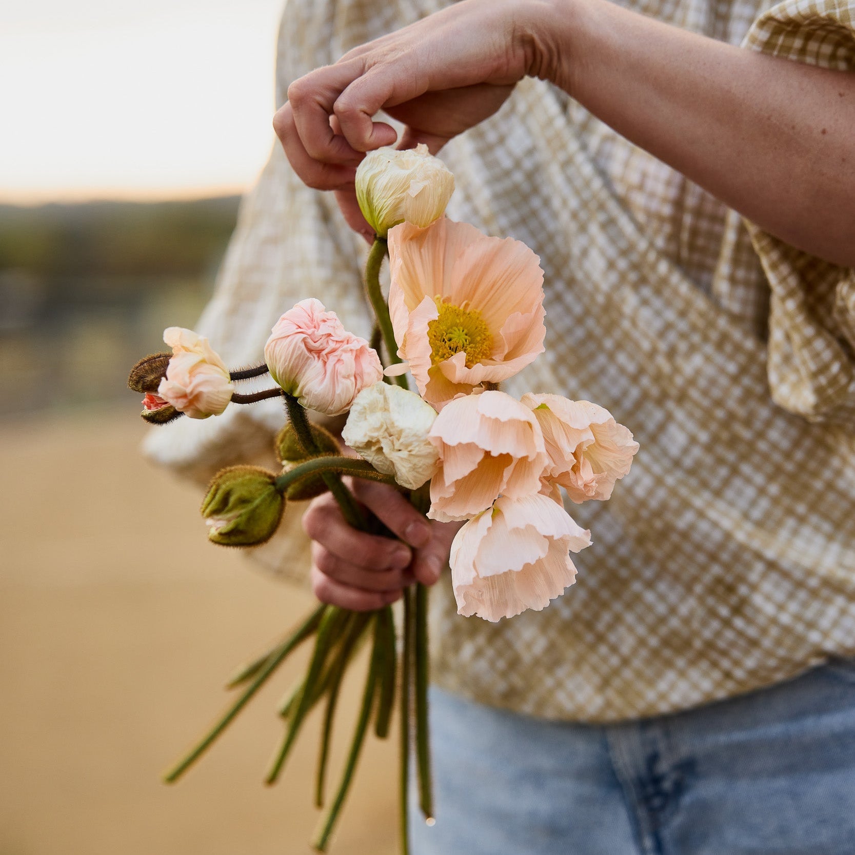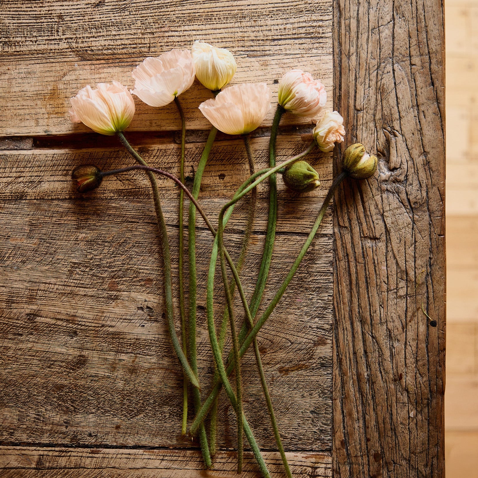 Remarks: Italian bred poppies. HUGE tissue papery flowers up to 15cm, in white to apricot peachy tones. Stem length approx 30cm.